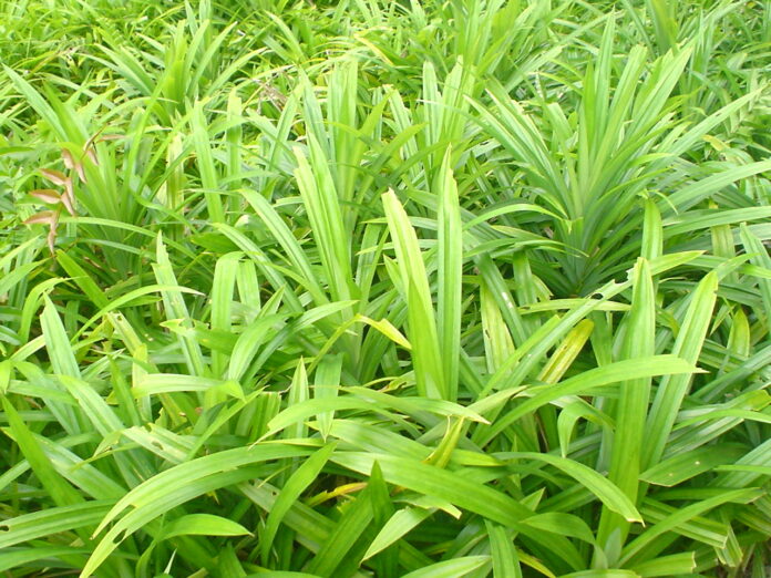 Cây lá nếp, lá dứa thơm trồng cạnh hồ cá coi, thủy sinh
