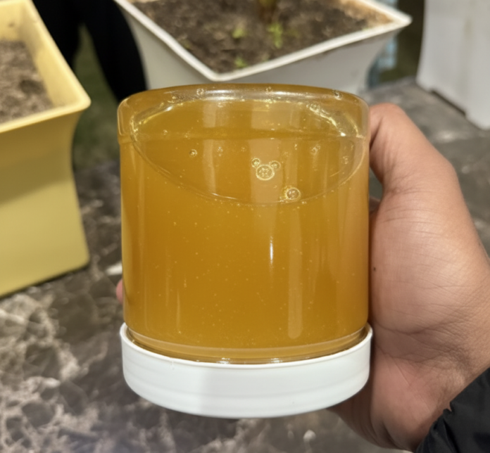 – Màu sắc: Mật ong thật có màu sắc đa dạng tùy loại hoa (vàng nhạt đến nâu đậm), nhưng luôn có độ trong tự nhiên và ánh bóng nhẹ khi soi dưới ánh sáng. Mật ong giả thường có màu quá tươi, đục hoặc trong vắt bất thường, đôi khi còn có hiện tượng kết tủa sớm hoặc tách lớp.